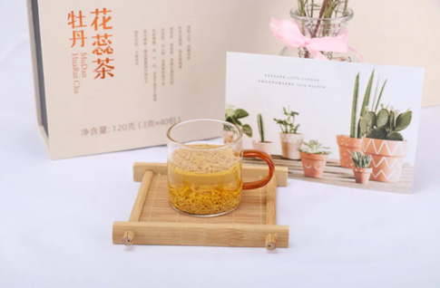 牡丹是我國特有的木本名貴花卉,其花蕊和花籽是牡丹生長最集中的部位,是牡丹的黃金部分,經(jīng)過采摘、分拈、低溫干燥、脫敏等十余道工序純手工生產(chǎn)而成牡丹花蕊茶,每畝牡丹僅能收獲約500克,產(chǎn)量稀少,粒粒含辛、寸寸如金。