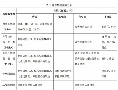 下表列出了2010聯(lián)合國糧農(nóng)組織出版的《脂肪、脂肪酸與人類營養(yǎng)》的關(guān)于脂肪酸的作用總結(jié)(總結(jié)了最近多年的研究結(jié)果)