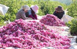 玫瑰的豐收季節(jié),大馬士革玫瑰競相綻放,晨光微曦,暗香浮動時,花農(nóng)穿梭其中,把帶著露水的鮮花瓣輕輕摘下放入籃筐。