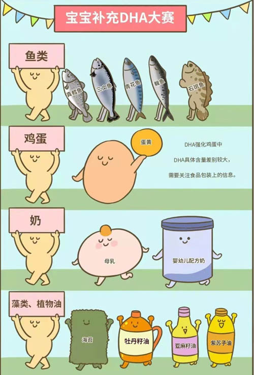 人體自身合成 DHA 的能力弱、效率低,所以 DHA 主要通過膳食補充,想要寶寶攝入充足的 DHA,最重要的就是得吃好!