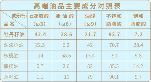 作為α-亞麻酸,這種人體必需但自身不能合成的脂肪酸,只能從食物獲得。據(jù)研究,在亞麻籽油、牡丹籽油等食用油中α-亞麻酸含量比較豐富,是其良好的食物來(lái)源。