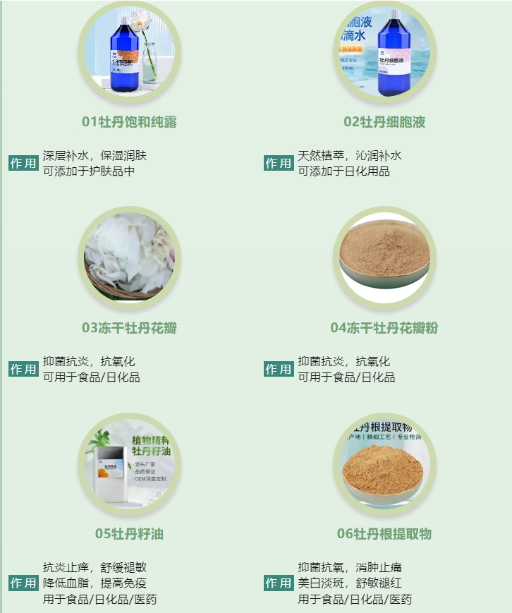 中資國業(yè)堅持科技創(chuàng)新,高質(zhì)量提取牡丹精粹。亞臨界萃取牡丹籽油,古法銅鍋蒸餾牡丹純露,工藝成熟,每種牡丹提取物出廠前都經(jīng)過權(quán)威檢測,并有專業(yè)功效檢測報告。