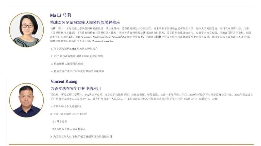 本次40周年會議,現(xiàn)場還有IFA認證芳療師、芳療專家,分享精油對緩解阿爾茨海默癥認知障礙、以及芳療對老人安寧療護的實際應(yīng)用,為芳療行業(yè)在輔助醫(yī)療保健賽道提供更多深度認知。