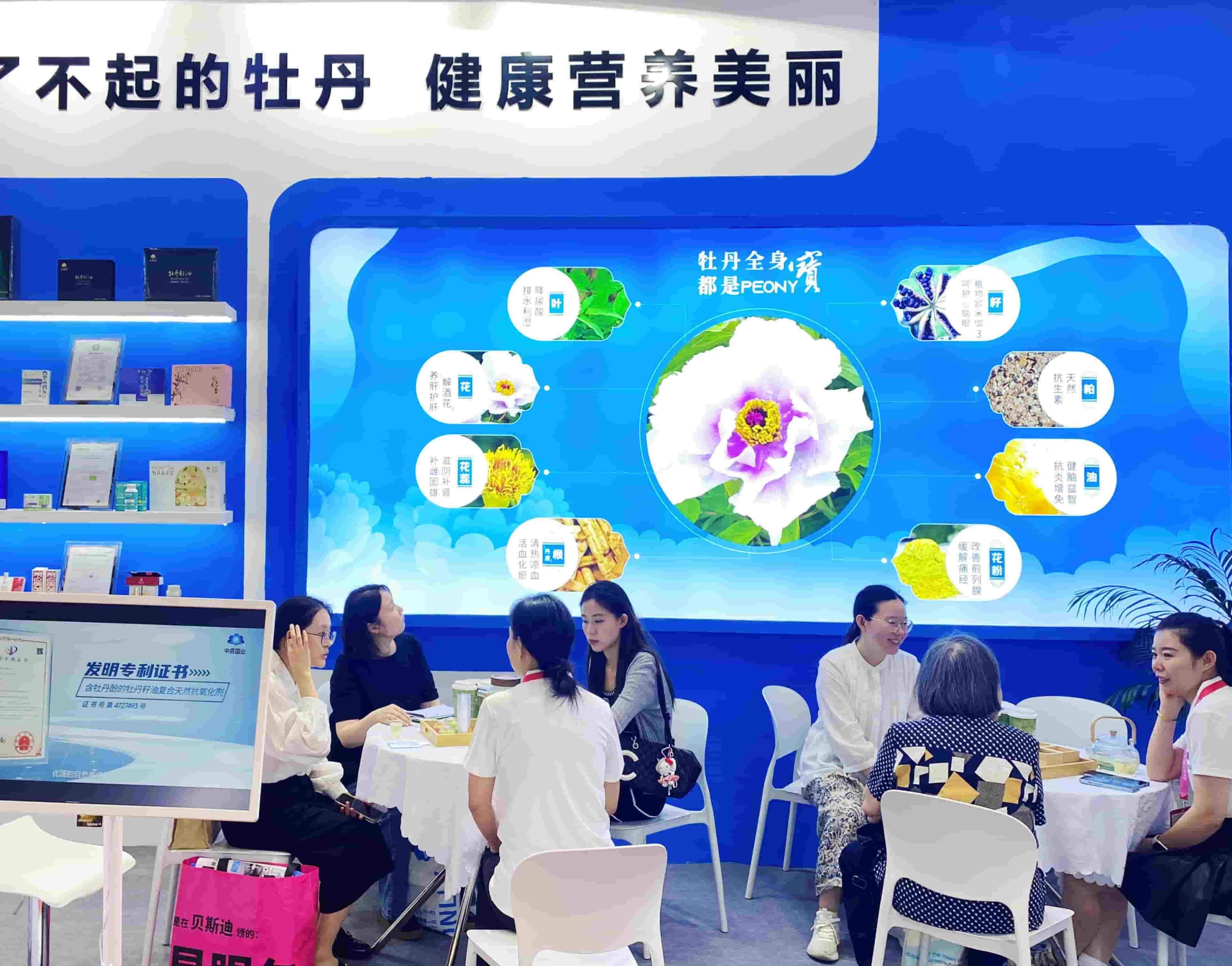 無論是富含omega-3的牡丹籽油,補雌固雄的牡丹花蕊,還是適合用于多行業(yè)的新品——丹鳳牡丹花提取物、牡丹花生粉,都引起了現(xiàn)場觀眾的強烈興趣,許多人深度駐足,圍繞牡丹原料的獨特功效、有機認(rèn)證細(xì)節(jié)、量產(chǎn)穩(wěn)定性等,與工作人員展開進(jìn)一步交流。