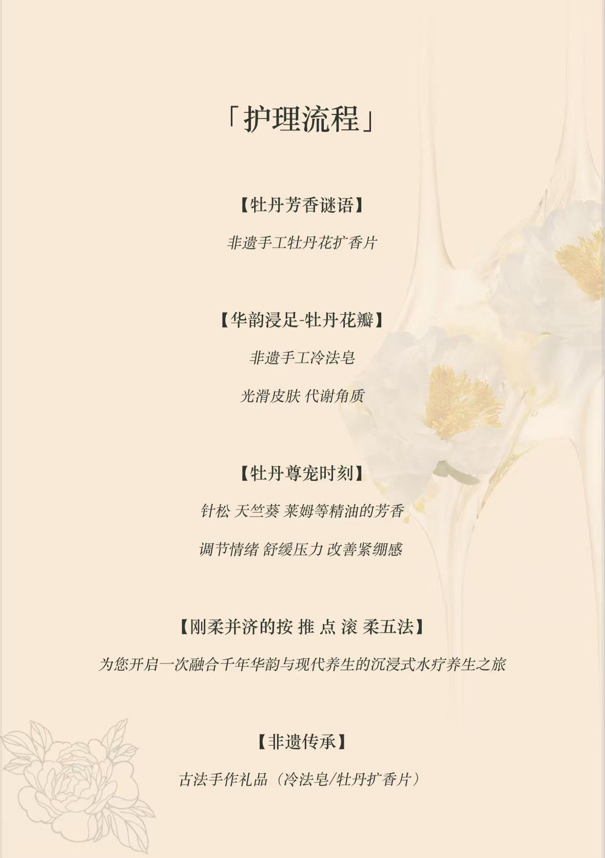 當(dāng)特制牡丹花泡浴包融入溫?zé)岘側(cè),牡丹花瓣精華隨水波輕漾,全身心地沉浸在牡丹花的潤養(yǎng)氛圍中,周身氣血如沐春風(fēng),煥活新生。