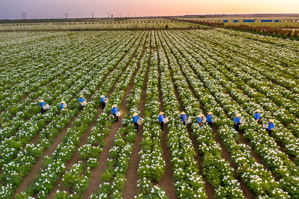 4月——鳳丹牡丹初綻時(shí)期,花農(nóng)們在凌晨的中資國業(yè)21760畝自有有機(jī)牡丹種植基地,親手采摘牡丹花,確保鳳丹的功效能高效發(fā)揮。